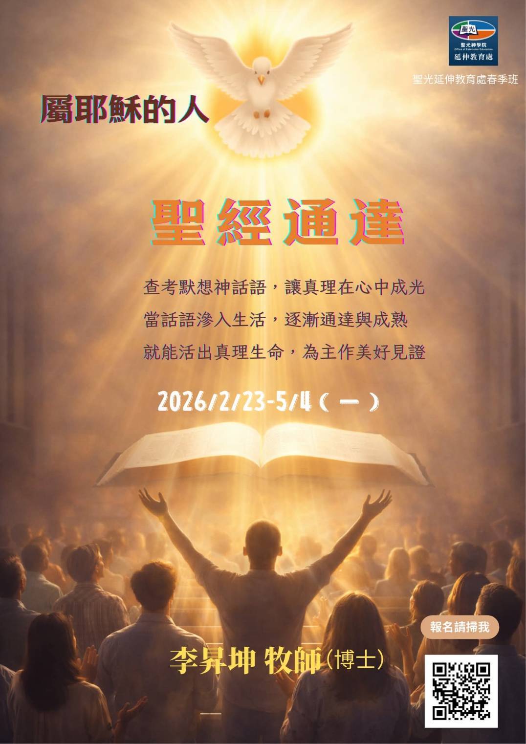 報名方式以教會團報為主,亦可以宅配的方式在教會舉行。(詳情可洽聖光延伸處)